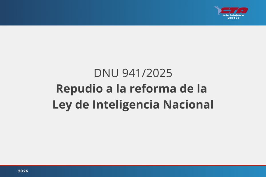 La CTA de las y los Trabajadores de la Argentina (CTA-T) y la Central de Trabajadores Autónoma (CTA-A) repudiamos enérgicamente la firma del DNU 941/2025 que reforma la Ley de Inteligencia Nacional.